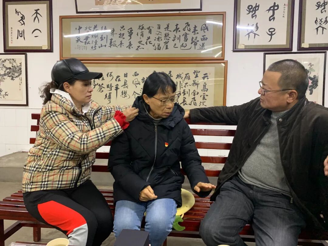 李红梅(左)与《桂梅老师》编剧王宝社(右)探访张桂梅老师(中)
