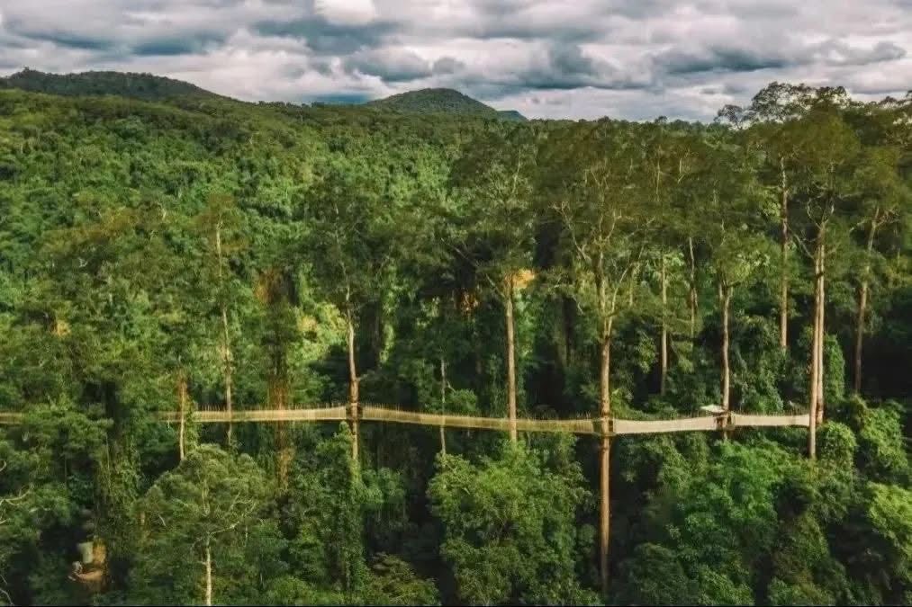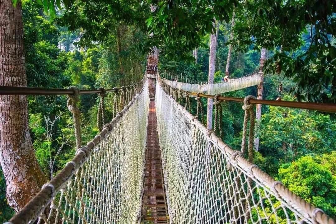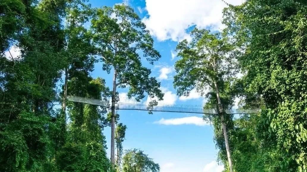 The Wangtianshu Scenic Area in Xishuangbanna is the perfect place to visit in the early morning! The giant trees here are so tall you can’t even see the tops when you look up from below. Walking along the canopy walkway, you’ll see endless stretches of lush green forest, with a gentle breeze brushing by. The river below is crystal clear, lined with tropical rainforest on both sides.