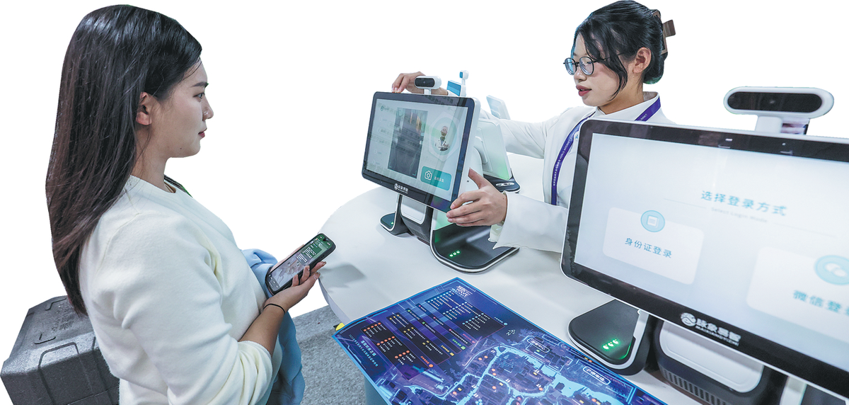 A woman receives an AI-powered traditional Chinese medicine diagnosis during an internet life carnival in Jiaxing, Zhejiang province, on Nov 5. XU YU/XINHUA