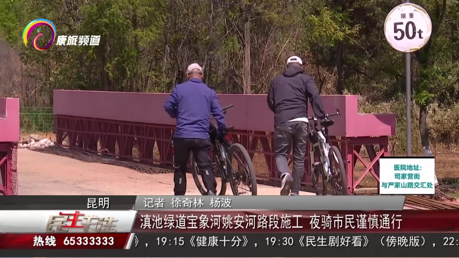 滇池绿道宝象河姚安河路段施工 夜骑市民谨慎通行
